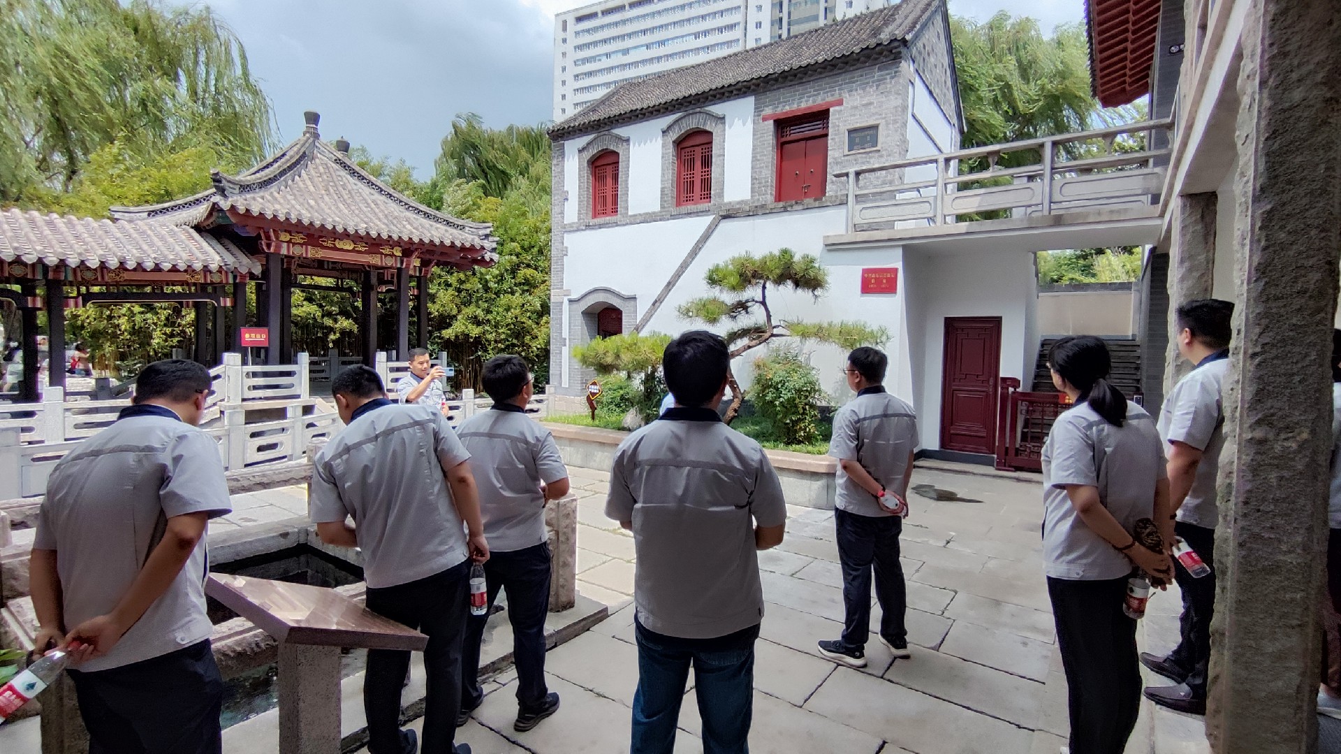 隨后大家來到室外展覽區(qū)——中共山東省委機關(guān)舊址,是一棟磚木結(jié)構(gòu)的二層小樓,位于五龍?zhí)豆珗@內(nèi),是迄今為止?jié)鲜斜4孀顬橥旰玫拇蟾锩鼤r期革命活動原址,有著百年以上歷史。一直到1927年,中共山東地執(zhí)委領(lǐng)導(dǎo)機關(guān)均在此秘密辦公。共產(chǎn)主義的星星之火,正是從這里燎原整個齊魯大地。這里是山東黨組織夢想啟航的地方。雖歷經(jīng)百年風雨,紅色精神依然在齊魯大地傳承發(fā)揚。