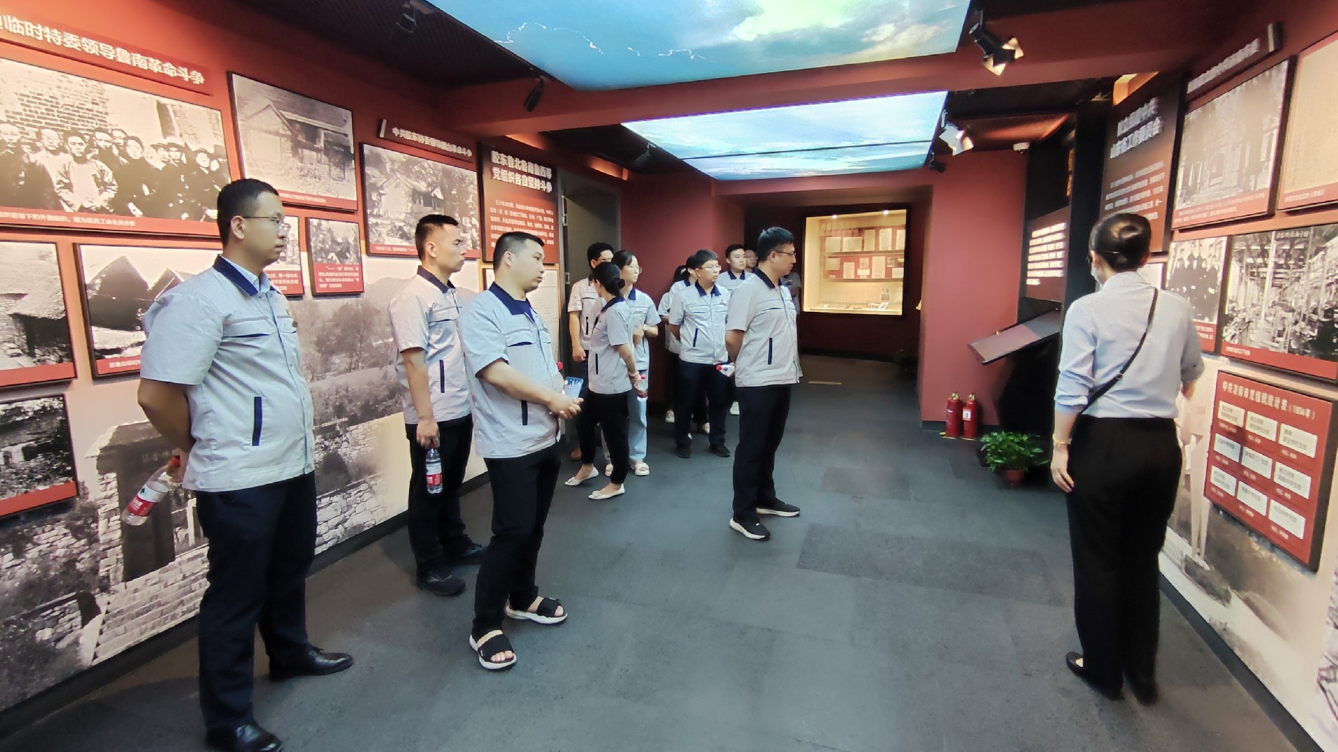 中共山東早期歷史紀念館位于五龍?zhí)豆珗@東南角,實體展館共兩層。同志們懷著無比崇敬的心情走進紀念館,參觀“齊魯曙光”主題展覽,隨著講解員的引導(dǎo),依次參觀“社會變革 歷史選擇”“點燃星火 彰顯初心”“工農(nóng)運動 異軍突起”“土地革命 前仆后繼”“信仰彌堅 鐵血擔當”“重建省委 抗日救亡”六大展廳。重溫了1921年至1937年山東黨組織創(chuàng)建、發(fā)展和斗爭的光輝歷程,重點了解了中共一大代表王盡美和鄧恩銘的革命事跡。