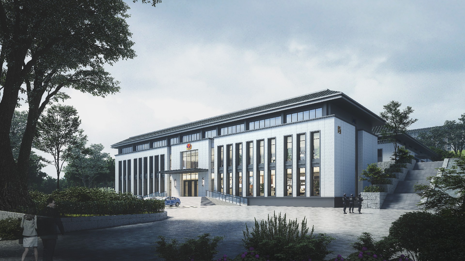 山東出入境邊防檢查總站輪訓(xùn)大隊(duì)(南山)營(yíng)區(qū)改造設(shè)計(jì)項(xiàng)目,總占地面職約 200 畝,對(duì)營(yíng)區(qū)內(nèi)主要建筑及附屬設(shè)施進(jìn)行功能改造,改造面積約總建筑面積約 1.6萬(wàn)平方米。"一人之形象,國(guó)家之縮影;一人之舉止,民族之風(fēng)貌。邊防檢查人員的形象和服務(wù)至關(guān)重大。本項(xiàng)目整體規(guī)劃格局莊重大氣,建筑效果協(xié)調(diào)統(tǒng)一,室內(nèi)裝飾溫馨舒適,充分考慮該地塊地形現(xiàn)狀,結(jié)合現(xiàn)有道路情況,通過(guò)設(shè)置多個(gè)臺(tái)地解決場(chǎng)地內(nèi)高差及功能分區(qū)的需求。本設(shè)計(jì)全面展現(xiàn)項(xiàng)目生態(tài)性、智能化。信息化、安全性等特色,倡導(dǎo)綠色健康、可持續(xù)發(fā)展的建筑模式。建筑整體設(shè)計(jì)大方、莊重.典雅,在設(shè)計(jì)細(xì)節(jié)上體現(xiàn)項(xiàng)目?jī)?yōu)良品質(zhì)。