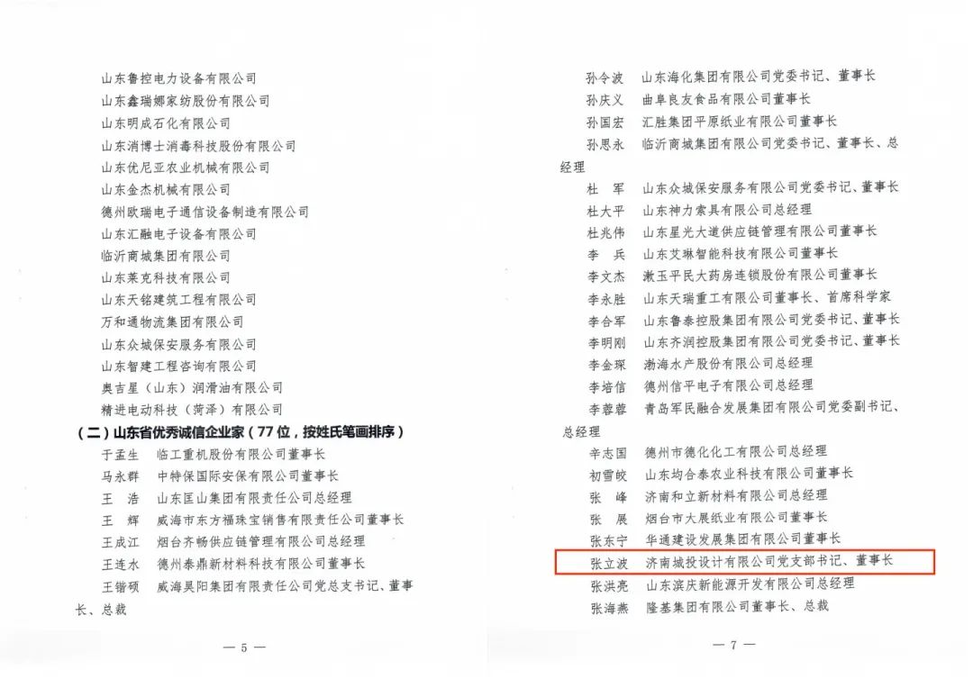 會(huì)議表彰了全省87家誠(chéng)信企業(yè)、77名優(yōu)秀誠(chéng)信企業(yè)家、25家誠(chéng)信建設(shè)示范企業(yè)和15名誠(chéng)信建設(shè)示范企業(yè)領(lǐng)軍人物。其中,濟(jì)南城投設(shè)計(jì)有限公司被授予“山東省誠(chéng)信企業(yè)”榮譽(yù)稱(chēng)號(hào),公司黨支部書(shū)記、董事長(zhǎng)張立波被授予“山東省優(yōu)秀誠(chéng)信企業(yè)家”榮譽(yù)稱(chēng)號(hào)。