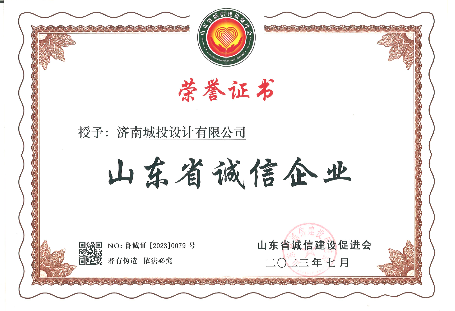多年來(lái),濟(jì)南城投設(shè)計(jì)有限公司以“為生態(tài)更文明,讓生活更美好”為企業(yè)使命,積極踐行“知行合一,為人民服務(wù)”的企業(yè)核心價(jià)值觀……將誠(chéng)信品質(zhì)深深融入到公司的企業(yè)文化和生產(chǎn)經(jīng)營(yíng)中,塑造了良好的企業(yè)形象,樹(shù)立了良好的社會(huì)聲譽(yù)。